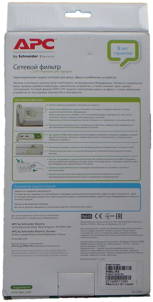Десять лет прошло с момента поглощения американской компании APC французской электромашиностроительной корпорацией Schneider Electric. Торговая марка была сохранена, но преобразована в APC by Schneider Electric. Что собой представляет продукция APC на данный момент мы попробуем выяснить, взяв на тест сетевой фильтр APC SurgeArrest PM6U-RS.